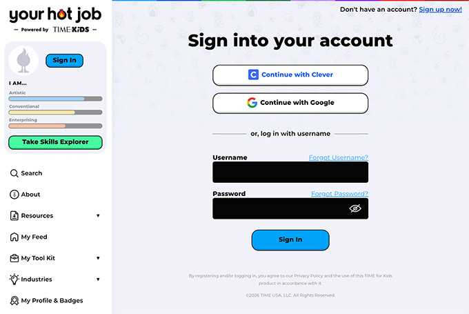 - Single sign-on (SSO): If your district uses Clever or Google SSO, students and teachers can access Your Hot Job with their existing school credentials—no new usernames or passwords to remember.